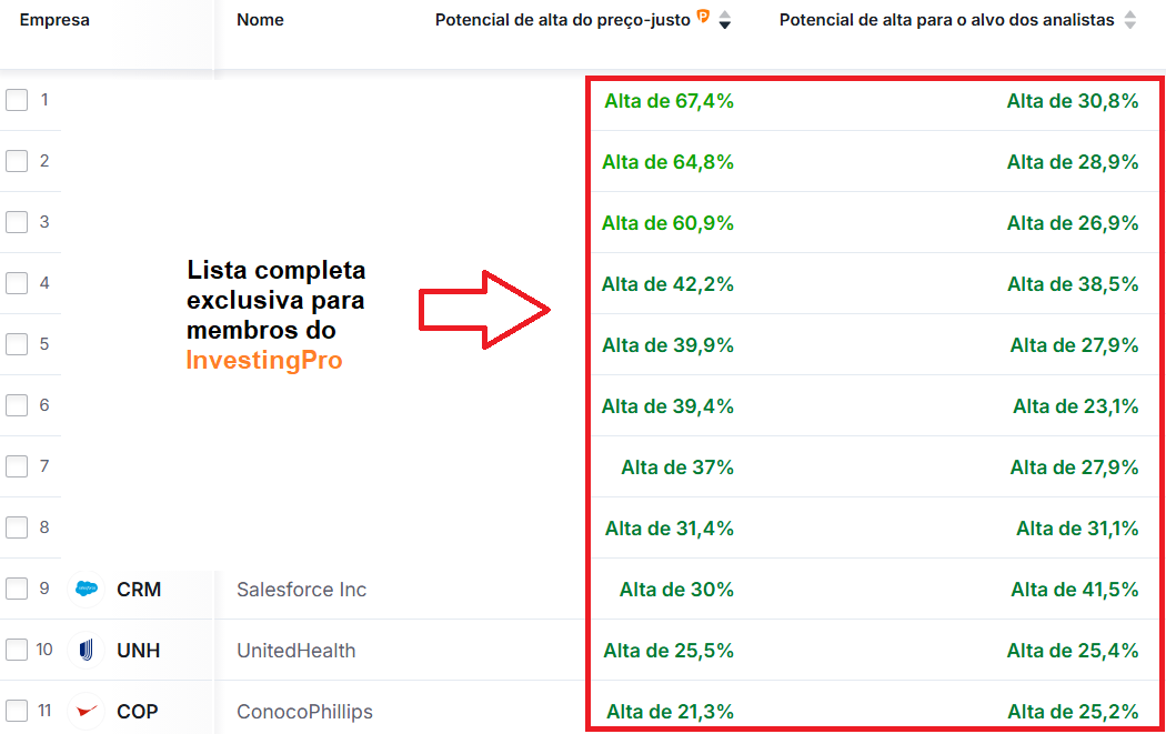 Nesta pesquisa, usamos indicadores exclusivos do InvestingPro, como o preço-justo e a nota de saúde financeira, disponíveis apenas para assinantes do plano Pro+.