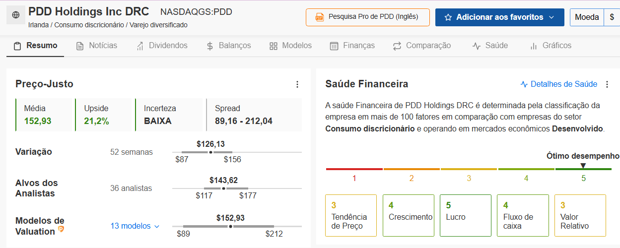 O destaque está em sua avaliação fundamentalista, que se mostra robusta tanto pelo potencial de valorização indicado pelo índice de preço-justo do InvestingPro quanto por sua sólida saúde financeira.