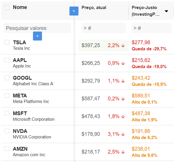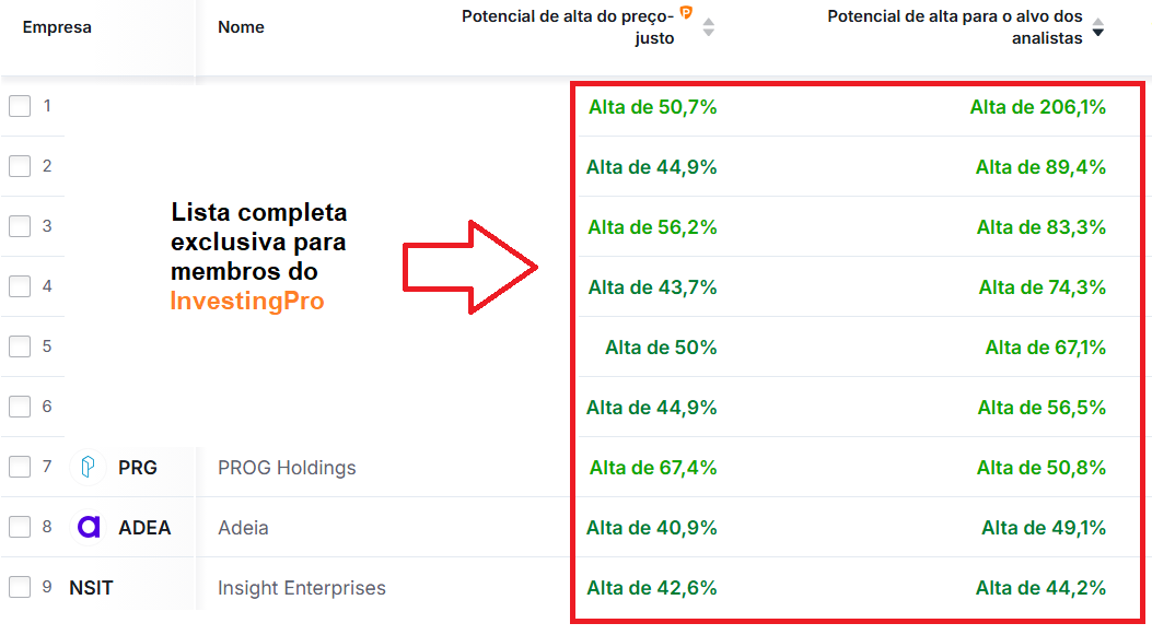 - Desconto mínimo de 40% em relação ao preço-justo InvestingPro