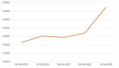 Desempenho Semanal do USD/BRL entre 06/out/2025 e 10/out/2025