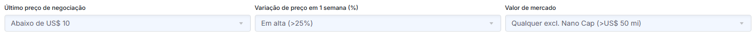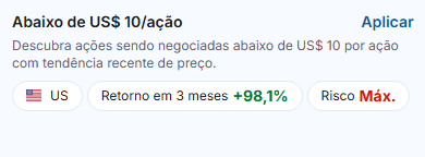 Lá, você encontrará o filtro “Abaixo de US$ 10/ação” na aba Popular.