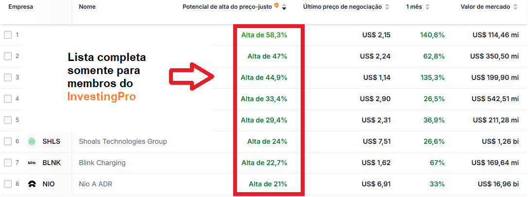 Ainda não é membro do InvestingPro? Clique abaixo e aproveite todos os filtros disponíveis.