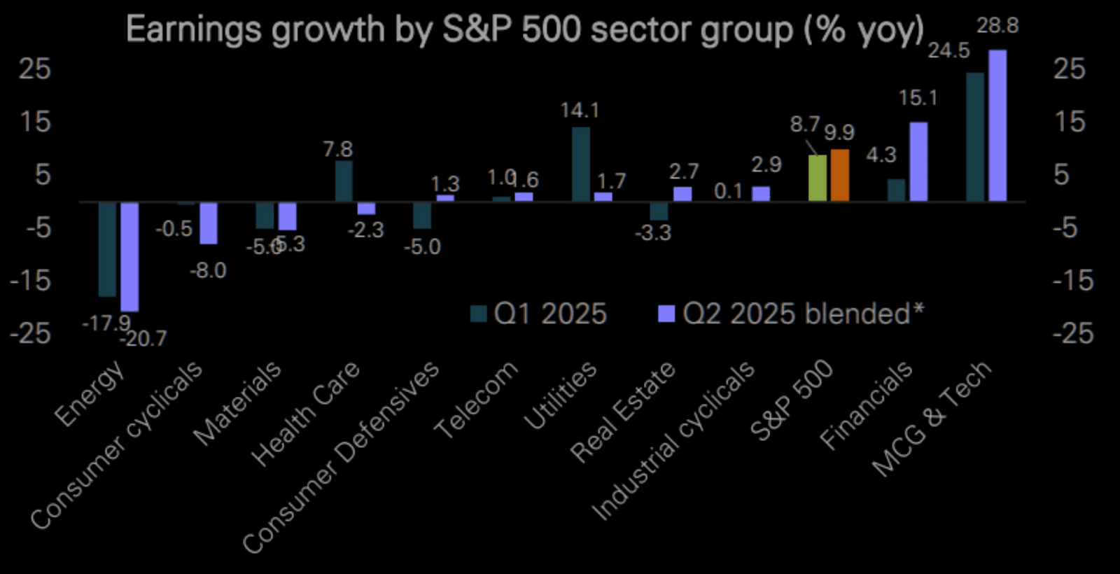 “Embora empresas de tecnologia e inteligência artificial tenham se destacado, sua força não é suficiente para compensar a pressão sobre margens de outros setores. No 2º trimestre, os lucros do S&P 500 cresceram 6,4%, com 80% das companhias superando estimativas. Mas esse número mascara a fragilidade do crescimento, já que os resultados positivos se concentraram essencialmente em apenas dois setores. Sem as big techs e os grandes bancos de Wall Street, não teria havido crescimento de lucros.”