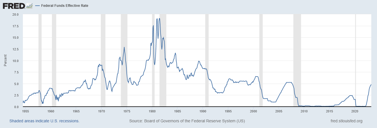 Hoje, a taxa de juros dos EUA está no intervalo de 5,25% a 5,50%, o maior em 23 anos.