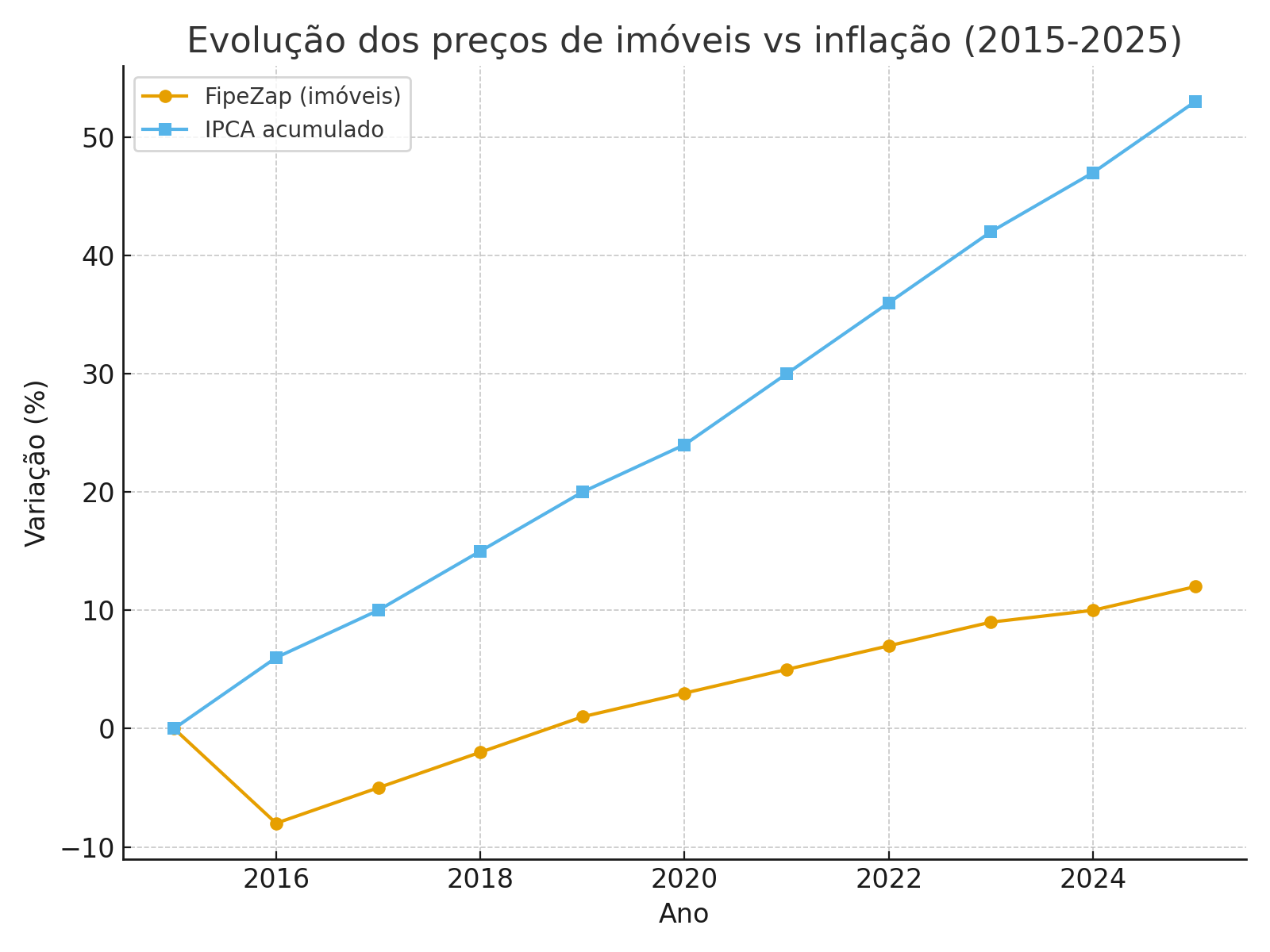 No imaginário brasileiro, o imóvel é o ativo infalível, a garantia de estabilidade em tempos incertos. Mas essa crença contrasta com os dados. Imóveis não oferecem juros compostos, possuem liquidez limitada e geram custos constantes de manutenção e impostos. Quando o ciclo se inverte, compradores que entraram no topo da valorização podem enfrentar perdas reais de patrimônio, um aprendizado amargo para milhares de famílias após 2015.