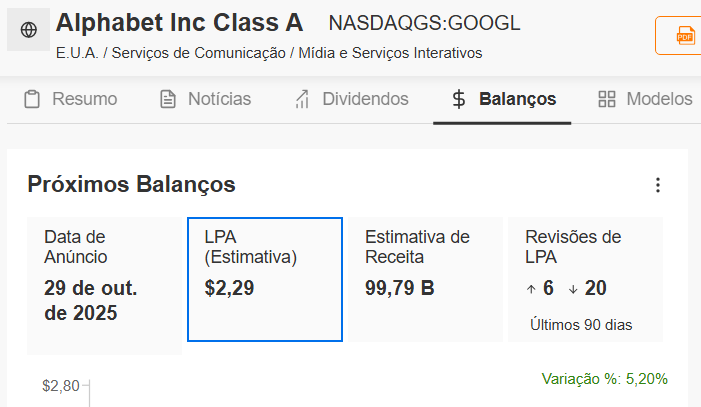 O CEO Sundar Pichai deve destacar a eficiência da integração de IA, o chamado ciclo virtuoso full stack, com avanços do Gemini e das TPUs reduzindo custos de capital. Surpresas positivas no segmento de nuvem podem gerar alta superior a 5%, como em outubro de 2024, mas o aumento das despesas em IA pode pressionar as margens para cerca de 32%.