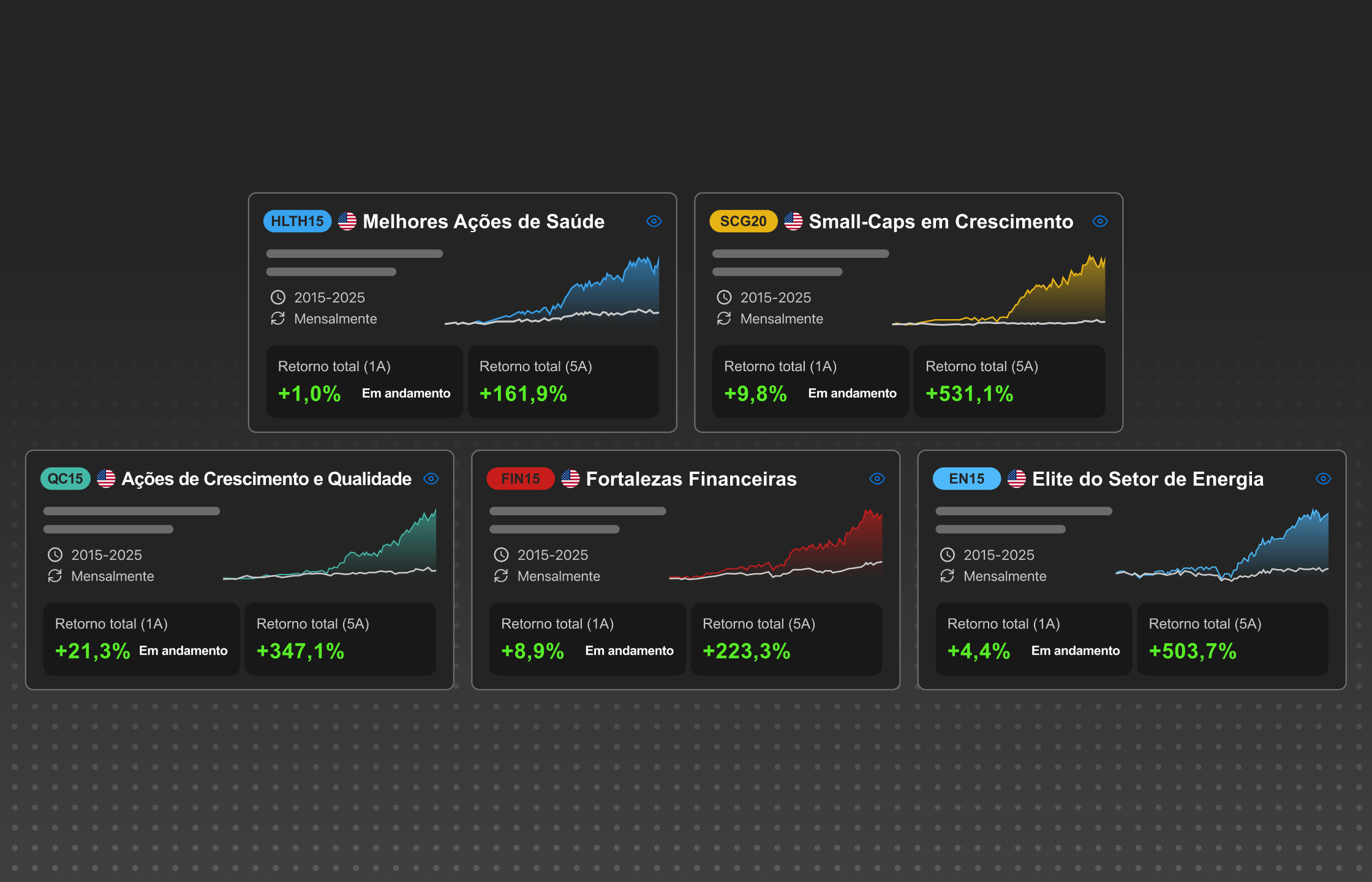 A mesma inteligência artificial que vem entregando retornos quase 90%* acima do S&P 500 está agora gerando ideias para mais mercados ao redor do mundo, analisando milhares de ações todo mês para destacar oportunidades que muitos deixam passar.