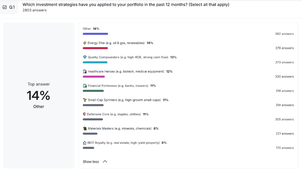 Perguntamos a cerca de 1.500 membros do Investing.com quais estratégias de investimento eles aplicaram nos últimos 12 meses, a fim de entender o que poderíamos acrescentar para ajudar a escolher ações ainda melhores.