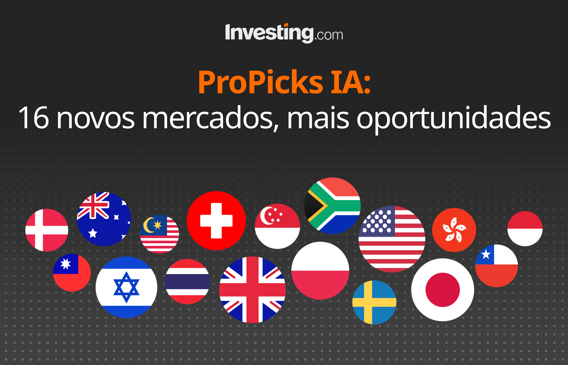Temos o prazer de anunciar que a ProPicks IA do Investing.com agora cobre 16 novos mercados internacionais: Austrália, Chile, Dinamarca, Hong Kong, Indonésia, Israel, Japão, Malásia, Polônia, Singapura, África do Sul, Suécia, Suíça, Taiwan, Tailândia e Reino Unido. Também estamos lançando 5 estratégias avançadas para o mercado dos EUA, desenvolvidas para diferentes estilos de investimento.