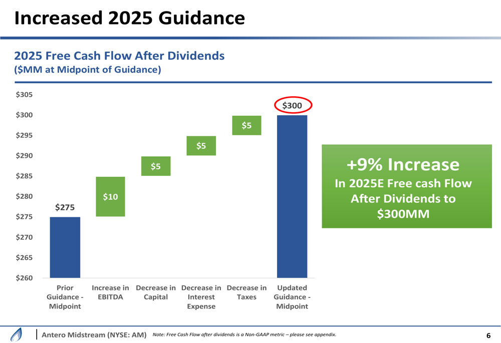 Em um desenvolvimento significativo, a Antero Midstream elevou sua previsão de fluxo de caixa livre após dividendos para 2025 em 9%, para US$ 300 milhões, acima da orientação anterior de US$ 275 milhões. Este aumento é atribuído a múltiplos fatores, incluindo EBITDA mais alto, menores despesas de capital, redução de despesas com juros e diminuição de impostos: