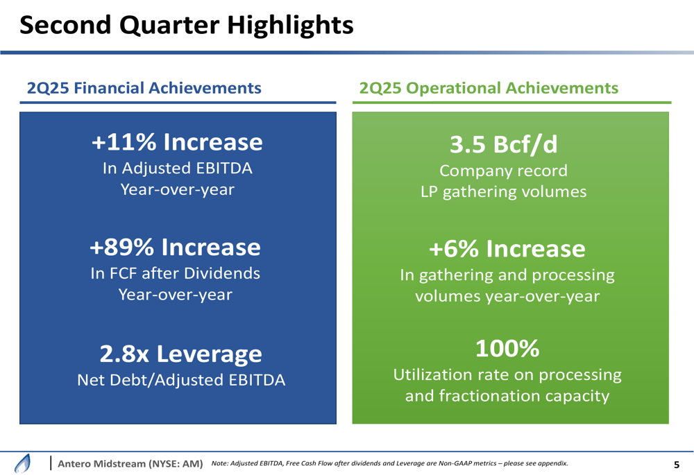 A Antero Midstream relatou melhorias substanciais ano a ano em métricas financeiras e operacionais chave para o segundo trimestre de 2025. A empresa alcançou um aumento de 11% no EBITDA Ajustado e um impressionante salto de 89% no fluxo de caixa livre após dividendos em comparação com o 2º tri de 2024.
