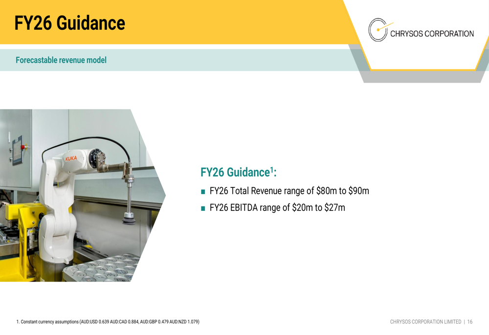 Olhando para o futuro, a Chrysos forneceu projeções ambiciosas para o ano fiscal de 2026, projetando receita total na faixa de US$ 80 milhões a US$ 90 milhões e EBITDA entre US$ 20 milhões e US$ 27 milhões, assumindo condições de câmbio constantes.