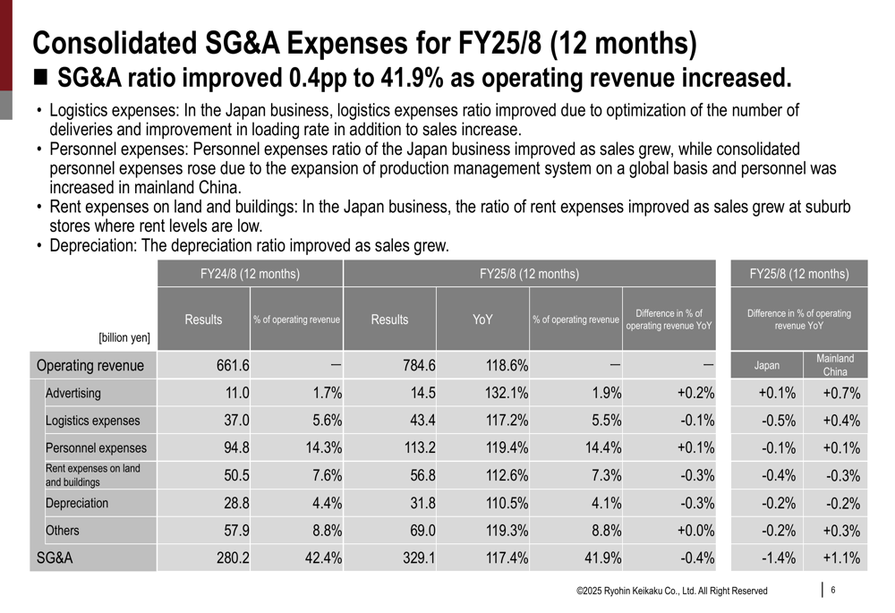 A empresa abriu 71 novas lojas no Japão e fechou 11, resultando em um aumento líquido de 60 lojas, totalizando 683 locais domésticos. No exterior, a empresa adicionou um líquido de 47 lojas, chegando a 729 locais, com a expansão mais significativa ocorrendo na China continental (aumento líquido de 24 lojas) e no Sudeste Asiático e Oceania (aumento líquido de 19 lojas).