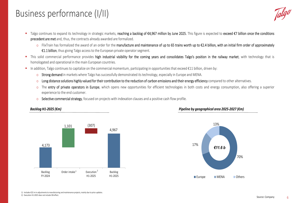 Apesar dos desafios financeiros, o desempenho comercial da Talgo tem sido robusto. A carteira de pedidos da empresa atingiu €4.967 milhões até junho de 2025, acima dos €4.173 milhões no final de 2024, impulsionada por novos pedidos significativos.