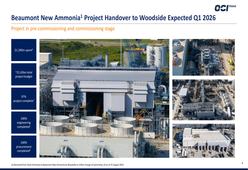 O projeto Beaumont New Ammonia representa uma das principais iniciativas restantes da empresa, com entrega à Woodside esperada para o 1º tri de 2026: