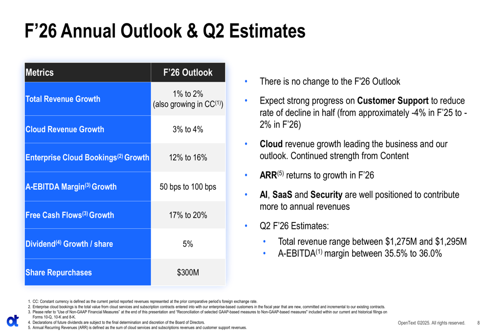 Para o 2º tri F’26, a OpenText forneceu as seguintes estimativas: