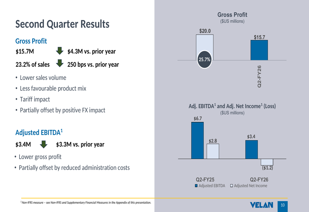 O EBITDA ajustado diminuiu para US$ 3,4 milhões, comparado a US$ 6,7 milhões no 2º tri-FY25, enquanto a empresa registrou um prejuízo líquido ajustado de US$ 1,2 milhão, em comparação com um lucro de US$ 2,8 milhões no mesmo período do ano anterior.