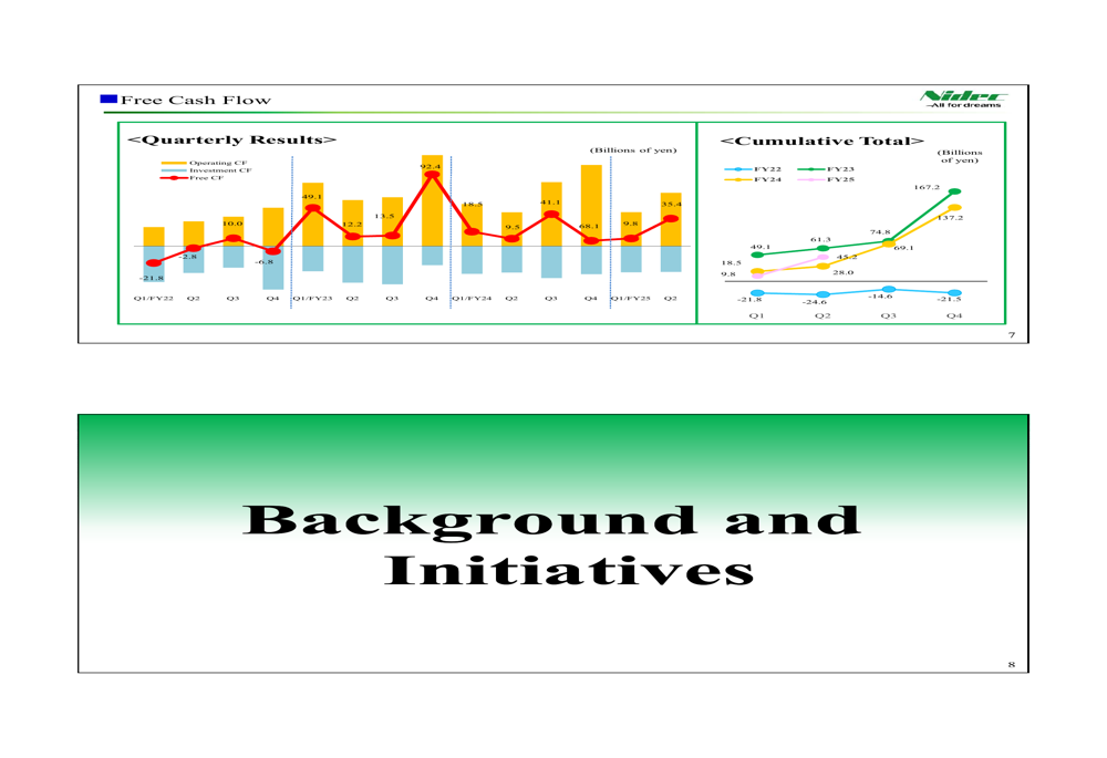 Enquanto a apresentação se concentra principalmente em reformas de governança e resultados financeiros, a teleconferência de resultados que a acompanhou forneceu contexto adicional, com o CEO Mitsuya Kishida enfatizando a necessidade de mudança cultural, afirmando: "Eliminaremos todos os maus hábitos do passado, e renasceremos como uma nova Nidec." A empresa também pausou atividades de fusões e aquisições para se concentrar na resolução de seus desafios internos.