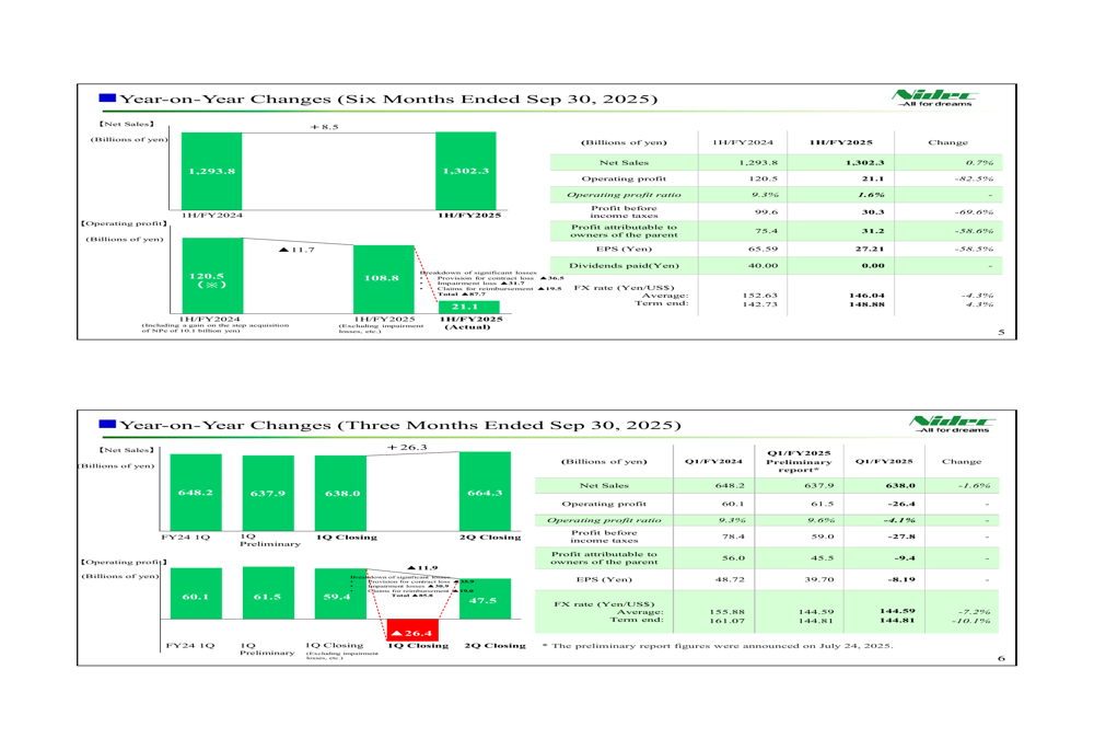 A Nidec Corporation (TSE:6594) revelou a extensão total de seus desafios financeiros em sua apresentação do primeiro semestre fiscal de 2025 em 14 de novembro, enquanto o fabricante japonês de motores enfrenta um grande escândalo contábil e perdas significativas em seu segmento automotivo. A empresa, que foi designada como "título sob alerta especial" pela Bolsa de Valores de Tóquio desde 30 de outubro, está agora implementando reformas corporativas abrangentes para resolver práticas contábeis inadequadas identificadas por uma investigação de terceiros.