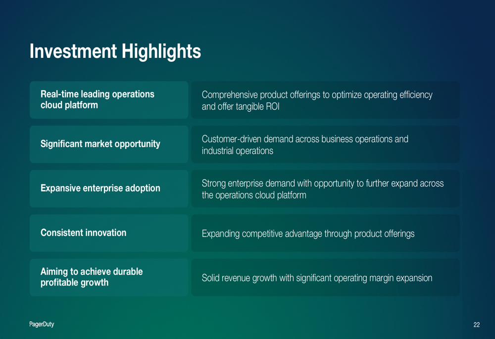 A PagerDuty resumiu sua tese de investimento com os seguintes pontos-chave: