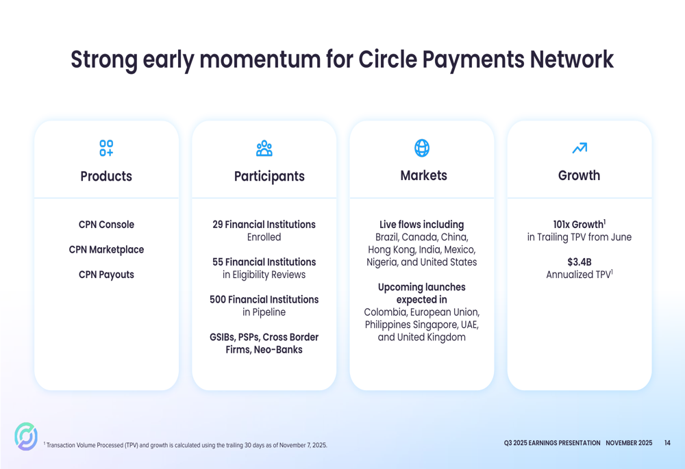 Além disso, a Circle Payments Network (CPN) está mostrando forte impulso inicial: