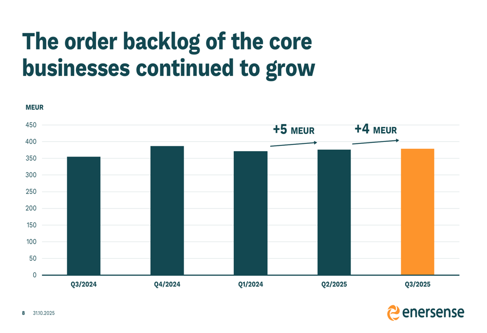 A carteira de pedidos crescente, que aumentou para € 390 milhões no 3º tri de 2025, proporciona alguma confiança no potencial de receita futura, apesar da queda atual na receita: