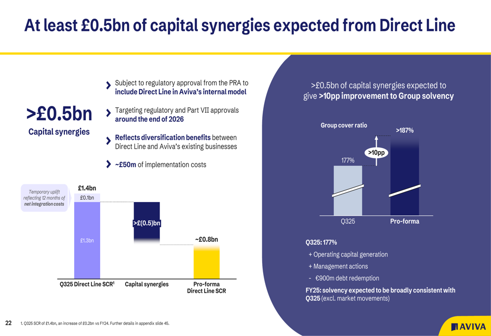 As sinergias de capital, que não foram divulgadas anteriormente, devem se materializar após aprovações regulatórias e da Parte VII por volta do final de 2026: