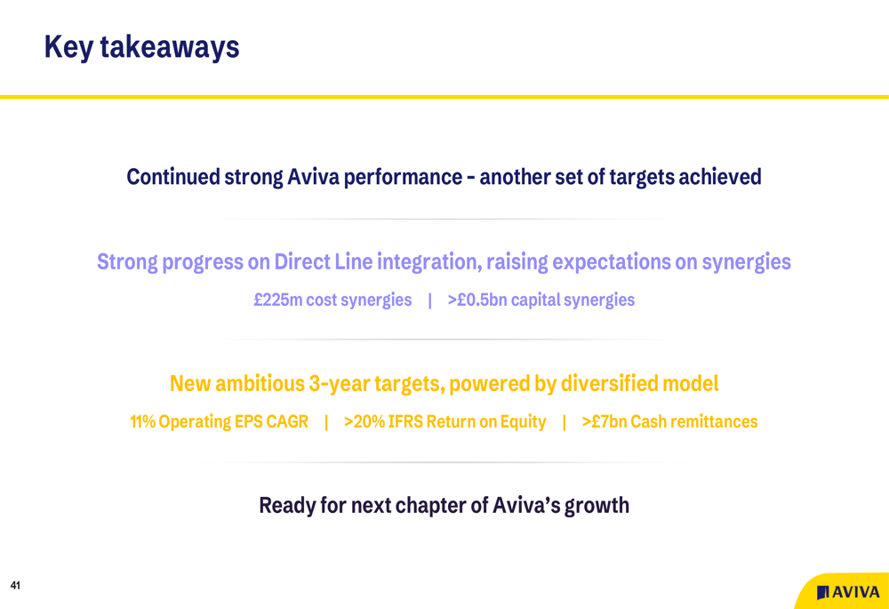 Em resumo, a apresentação do 3º tri de 2025 da Aviva demonstra forte desempenho operacional, integração bem-sucedida da Direct Line com expectativas aumentadas de sinergia, e novas metas ambiciosas que refletem a confiança da empresa em seu modelo de negócios diversificado e direção estratégica.