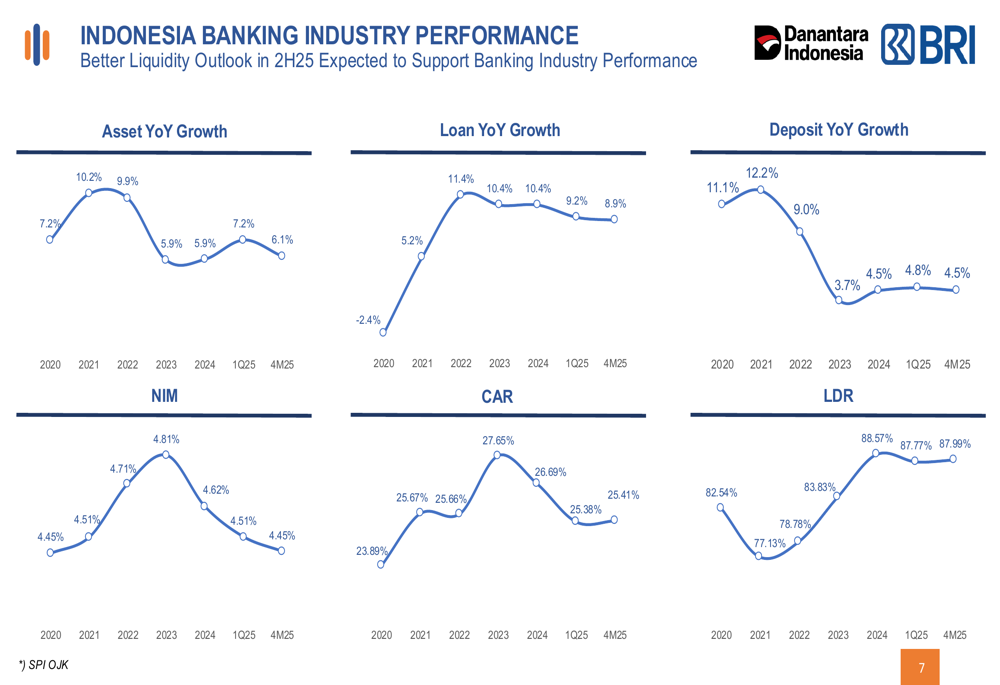 No âmbito mais amplo do setor bancário, o BRI observou que o crescimento dos empréstimos atingiu 8,9% na comparação anual até abril de 2025, enquanto o crescimento dos depósitos foi mais modesto, em 4,5%, refletindo condições de liquidez mais apertadas que persistiram durante o primeiro semestre do ano.