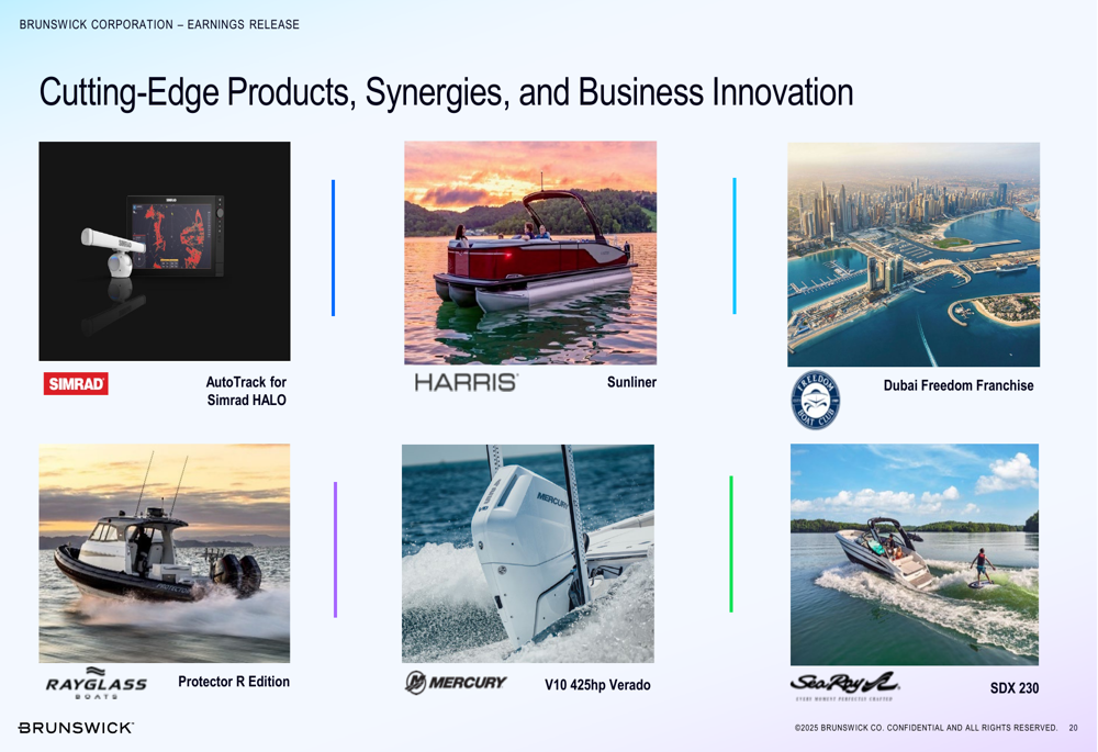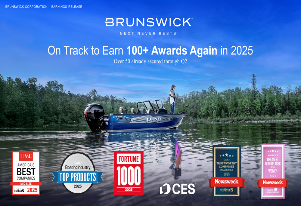A Brunswick também destacou seu reconhecimento na indústria, observando que já garantiu mais de 50 prêmios até o 2º tri de 2025 e está no caminho certo para ganhar mais de 100 prêmios no ano completo:
