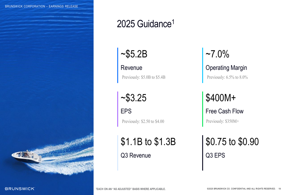 O slide a seguir detalha a orientação atualizada da Brunswick para 2025:
