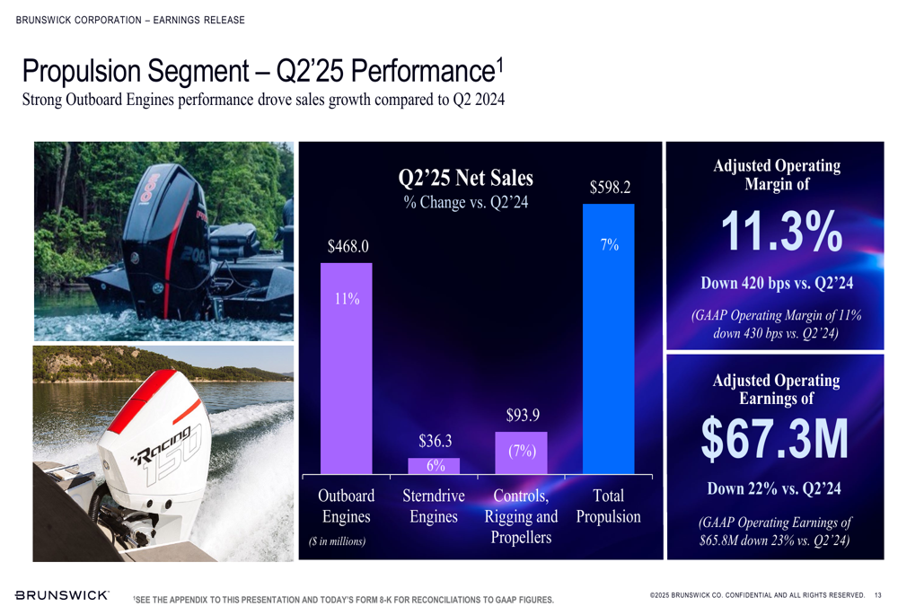 O desempenho da Brunswick variou significativamente entre seus quatro segmentos de negócios, com o segmento de Propulsão mostrando força enquanto outras divisões enfrentaram desafios.