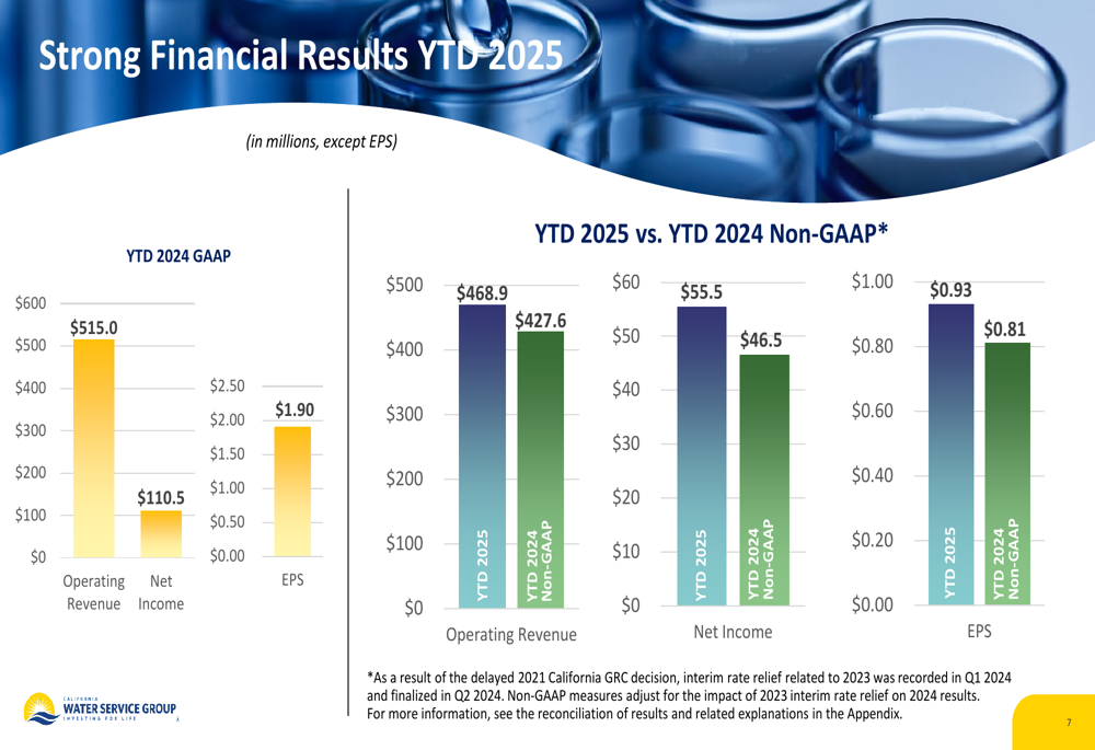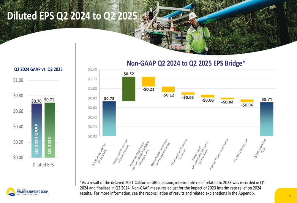 Para o período acumulado do ano, a CWT reportou uma melhoria mais significativa, com receita operacional de US$ 468,9 milhões (acima dos US$ 427,6 milhões) e lucro líquido de US$ 55,5 milhões (acima dos US$ 46,5 milhões) em base não-GAAP. Isso se traduziu em um LPA acumulado no ano de US$ 0,93, representando um aumento de 15% em relação ao LPA não-GAAP de US$ 0,81 no primeiro semestre de 2024.