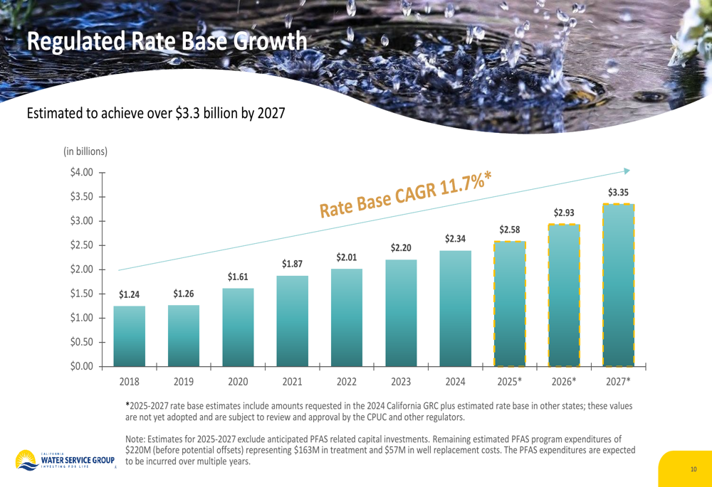 O resultado do Caso de Tarifa Geral da Califórnia de 2024 será crítico para o crescimento futuro da receita, com uma decisão esperada após o período típico de revisão de 18 meses. Este caso é particularmente significativo, pois inclui o Programa de Equidade de Água de Baixo Uso (LUWEP), projetado para desacoplar a receita das vendas de água para aumentar a acessibilidade.