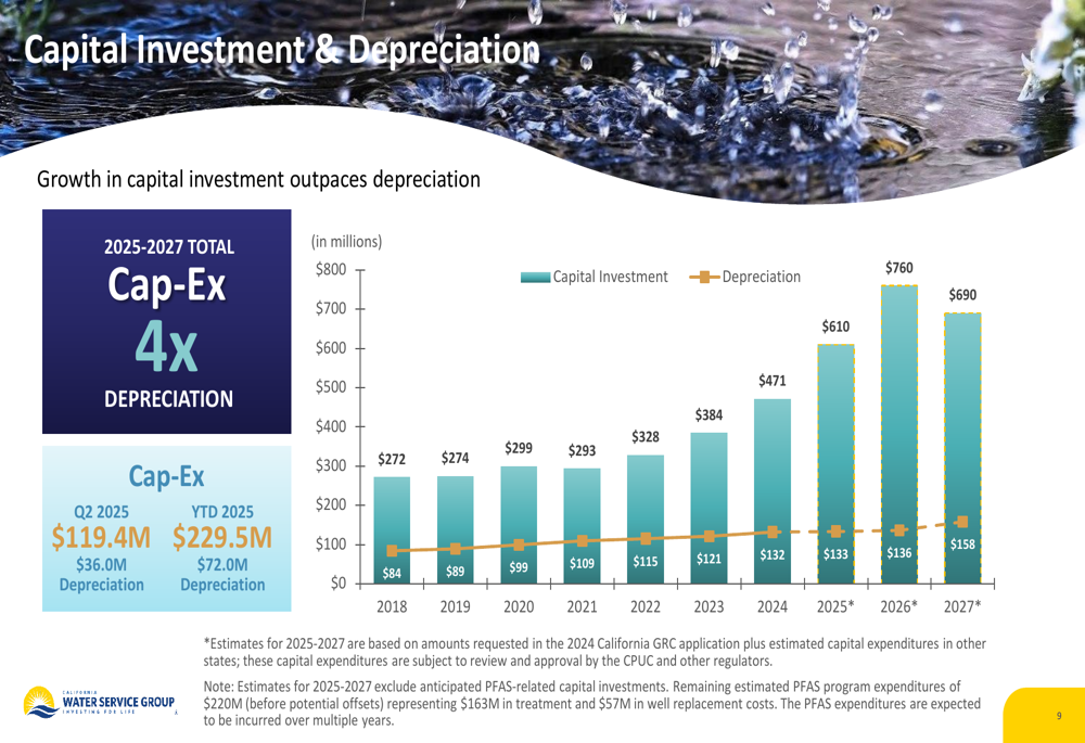 Olhando para o futuro, a CWT espera continuar seu significativo programa de investimento de capital, com alguns ajustes no cronograma de investimentos relacionados a PFAS. A empresa observou que algumas substituições de poços deslocarão uma parte dos US$ 226 milhões planejados em investimentos em PFAS de 2025-2027 para anos posteriores, alinhando-se com a orientação em evolução da EPA.