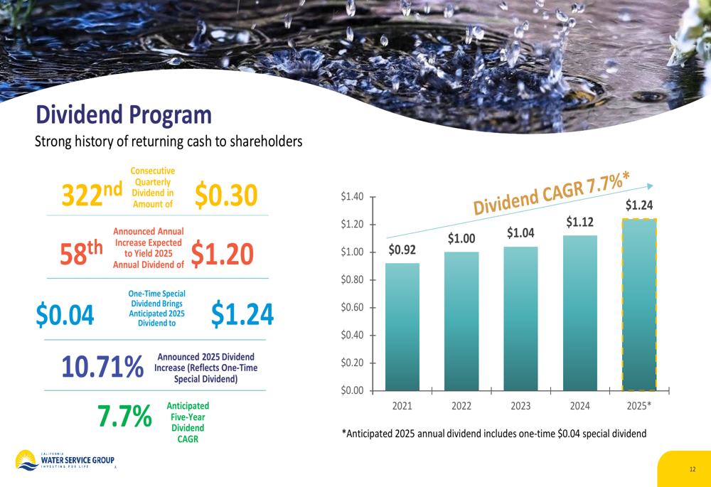 A CWT destacou seu impressionante histórico de dividendos, celebrando seu 322º dividendo trimestral consecutivo. O dividendo trimestral atual é de US$ 0,30 por ação, com um dividendo anual de US$ 1,20. Além disso, a empresa anunciou um dividendo especial único, elevando o dividendo total previsto para 2025 para US$ 1,24 por ação.