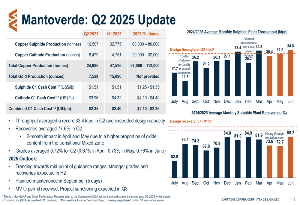 Olhando para o futuro, as prioridades da Capstone para o segundo semestre de 2025 incluem a aprovação do projeto MV-O e o avanço do processo de parceria para Santo Domingo. A empresa espera maior produção de cobre na segunda metade do ano, impulsionada principalmente por Mantoverde e Pinto Valley.