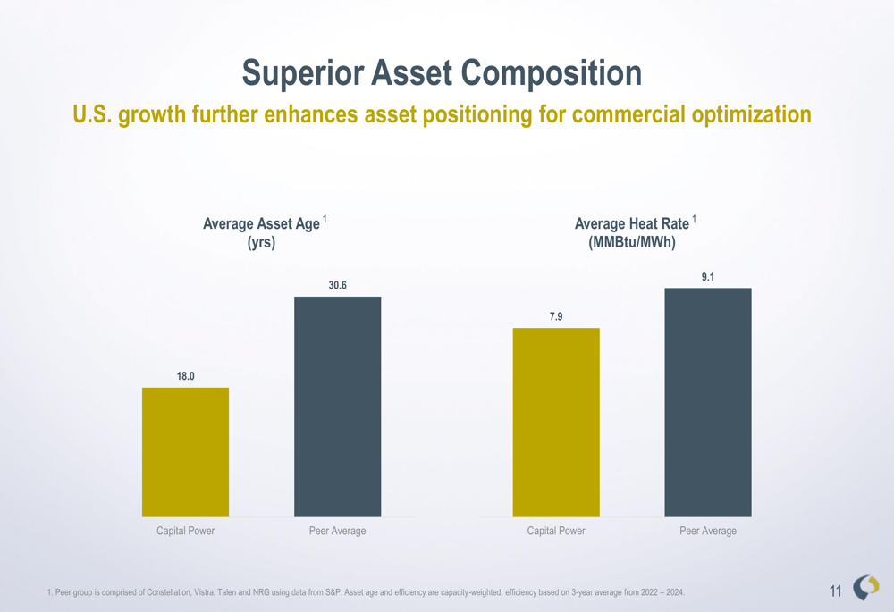 A Capital Power também destacou suas vantagens competitivas em termos de idade e eficiência de ativos em comparação com seus pares. Os ativos da empresa são significativamente mais jovens (18,0 anos vs. média dos pares de 30,6 anos) e mais eficientes (taxa de calor de 7,9 MMBtu/MWh vs. média dos pares de 9,1 MMBtu/MWh).