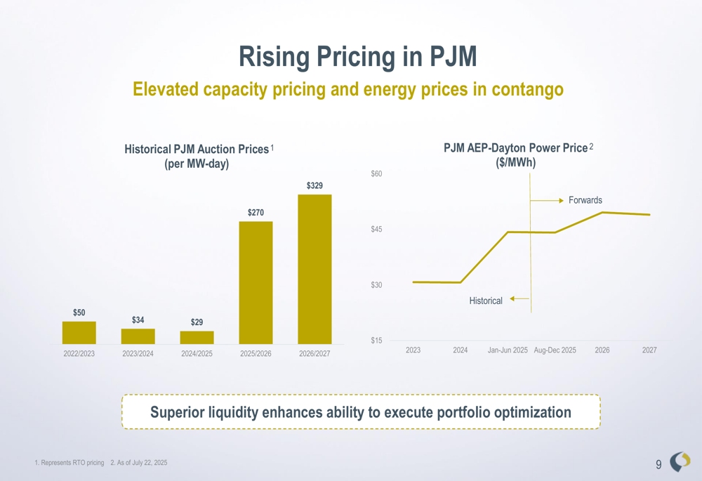 A Capital Power destacou fortes fundamentos de mercado em todas as suas regiões de operação, com ênfase particular no aumento dos preços de capacidade e energia no mercado PJM. A empresa observou que os preços de capacidade do PJM aumentaram aproximadamente 22% para US$ 329/MW-dia no leilão mais recente, enquanto os preços de energia e os spreads de spark permanecem fortes.