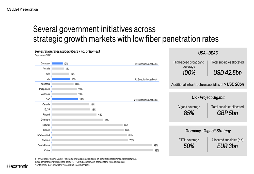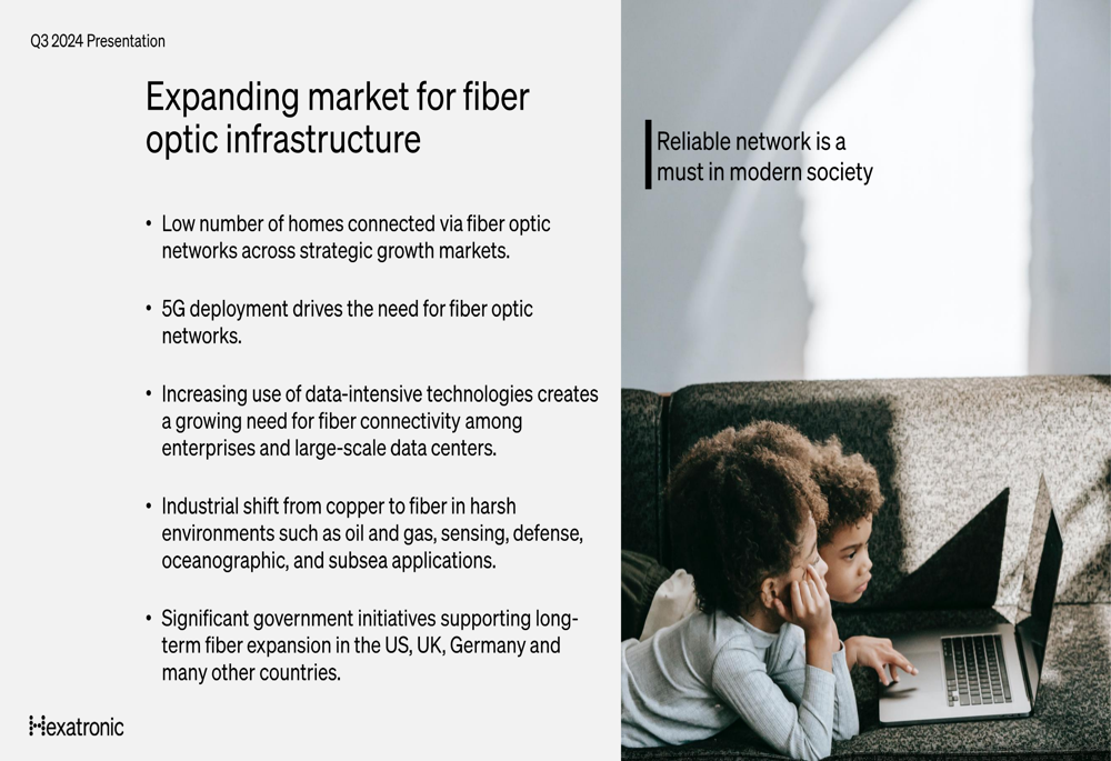 A Hexatronic Group AB divulgou seus resultados financeiros do 3º tri de 2024 em 25 de outubro, destacando uma melhora sequencial na lucratividade, apesar dos desafios contínuos nos mercados europeus de fibra. O fornecedor de soluções de fibra óptica continua a navegar por um período de transição em seu negócio principal, enquanto observa um forte crescimento em seus segmentos de diversificação.