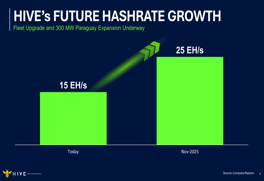 A apresentação da HIVE enfatizou duas grandes iniciativas estratégicas: expandir sua capacidade de mineração de Bitcoin e diversificar para infraestrutura de IA através de sua subsidiária BUZZ HPC.