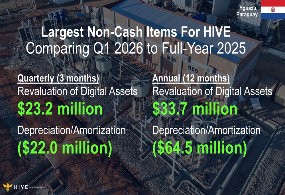 O lucro líquido da empresa tornou-se positivo em US$ 35 milhões, em comparação com um prejuízo líquido de US$ 18,3 milhões no 1º tri do ano fiscal de 2025. Essa melhoria foi parcialmente impulsionada por uma reavaliação de US$ 23,2 milhões em ativos digitais, embora tenha sido parcialmente compensada por US$ 22 milhões em despesas de depreciação e amortização.