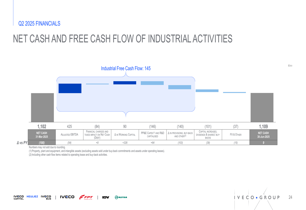 A melhoria do fluxo de caixa livre da Iveco foi impulsionada pela gestão disciplinada do capital de giro e eficiências operacionais, apesar do ambiente desafiador de receitas.