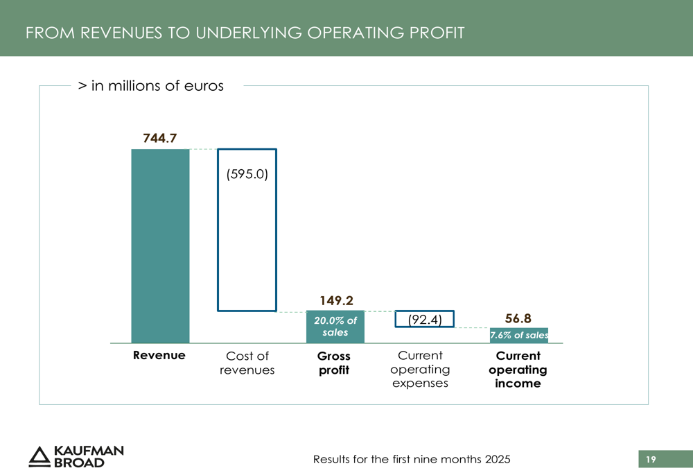 A incorporadora imobiliária francesa Kaufman & Broad SA (PAR:KOF) reportou resultados sólidos para os primeiros nove meses de 2025, com crescimento de receita de 6,2% em relação ao ano anterior, atingindo €744,7 milhões, de acordo com sua apresentação divulgada em 3 de outubro. A empresa continua superando o mercado imobiliário mais amplo, apesar dos desafios do setor, mantendo sua margem operacional em 7,6%.