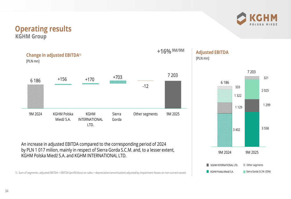 O ambiente macroeconômico tem sido favorável para metais preciosos, com os preços da prata subindo 29% em comparação ao ano anterior, enquanto os preços do cobre aumentaram de forma mais modesta, em 5%. No entanto, o fortalecimento do zloty polonês frente ao dólar americano compensou parcialmente esses ganhos, com a taxa de câmbio USD/PLN diminuindo em 4%.