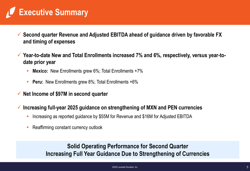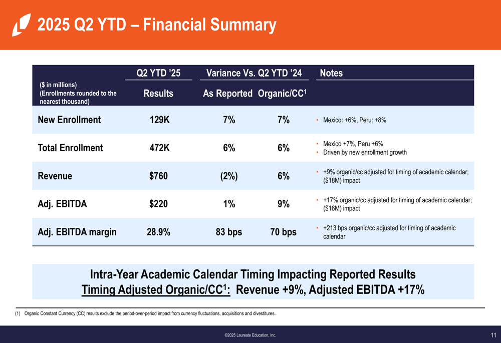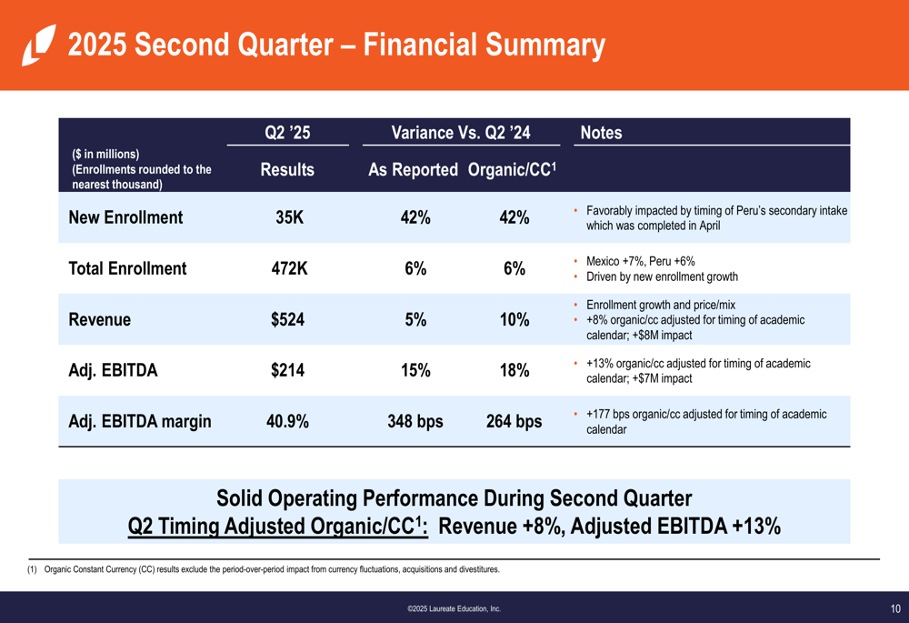 A apresentação do 2º tri de 2025 da Laureate Education demonstra forte desempenho operacional em seus mercados, com crescimento de matrículas impulsionando receita e expansão de margem. A orientação aumentada da empresa reflete tanto força operacional quanto movimentos favoráveis de câmbio, enquanto seu forte balanço suporta retornos contínuos de capital aos acionistas.