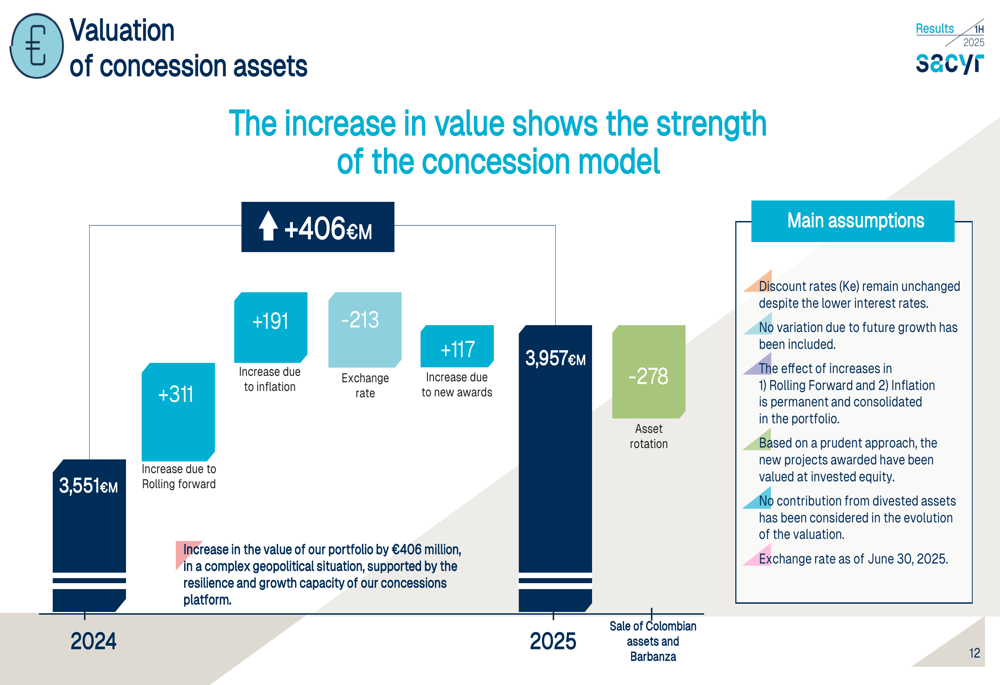 A avaliação dos ativos de concessão da Sacyr alcançou €3.957 milhões em dezembro de 2025, representando um aumento de €406 milhões em relação a dezembro de 2024. Este crescimento demonstra a força do modelo de concessão da empresa e a coloca no caminho para atingir sua meta de €5,1 bilhões até 2027.