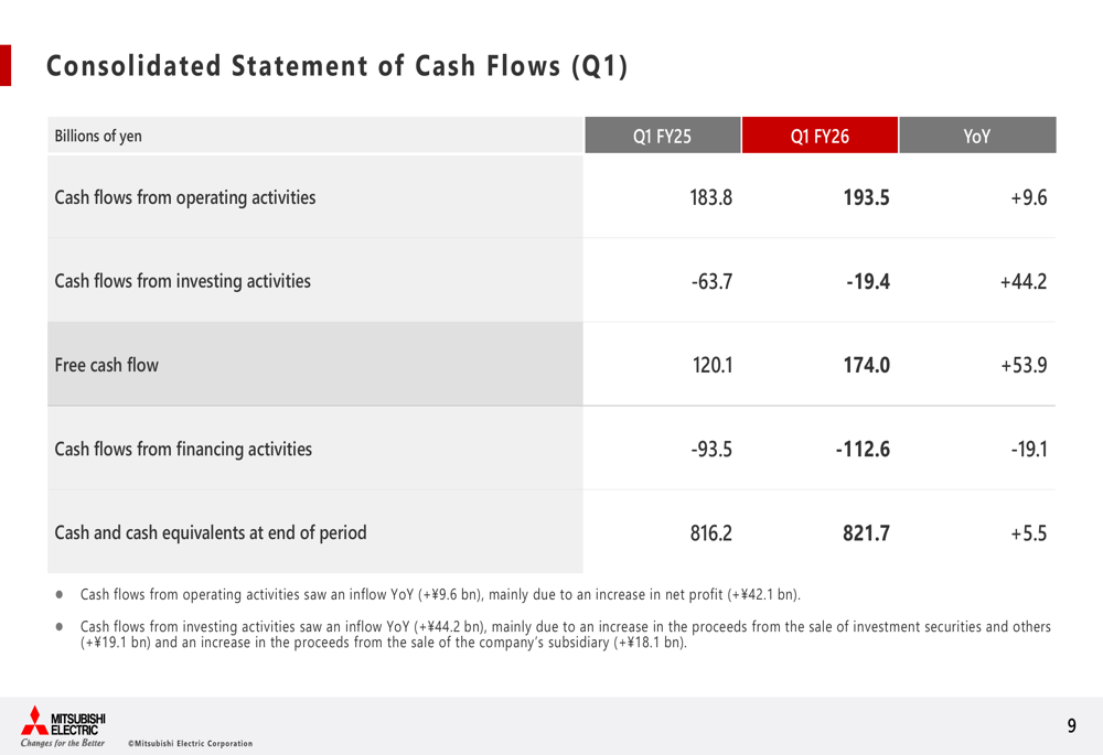 O crescimento do lucro da empresa foi impulsionado pelo aumento de volume, melhorias de preços de aproximadamente ¥9,0 bilhões e reduções de custos de aproximadamente ¥7,0 bilhões. Adicionalmente, um ganho único de aproximadamente ¥22,0 bilhões da transferência de ações de uma subsidiária contribuiu para os fortes resultados.