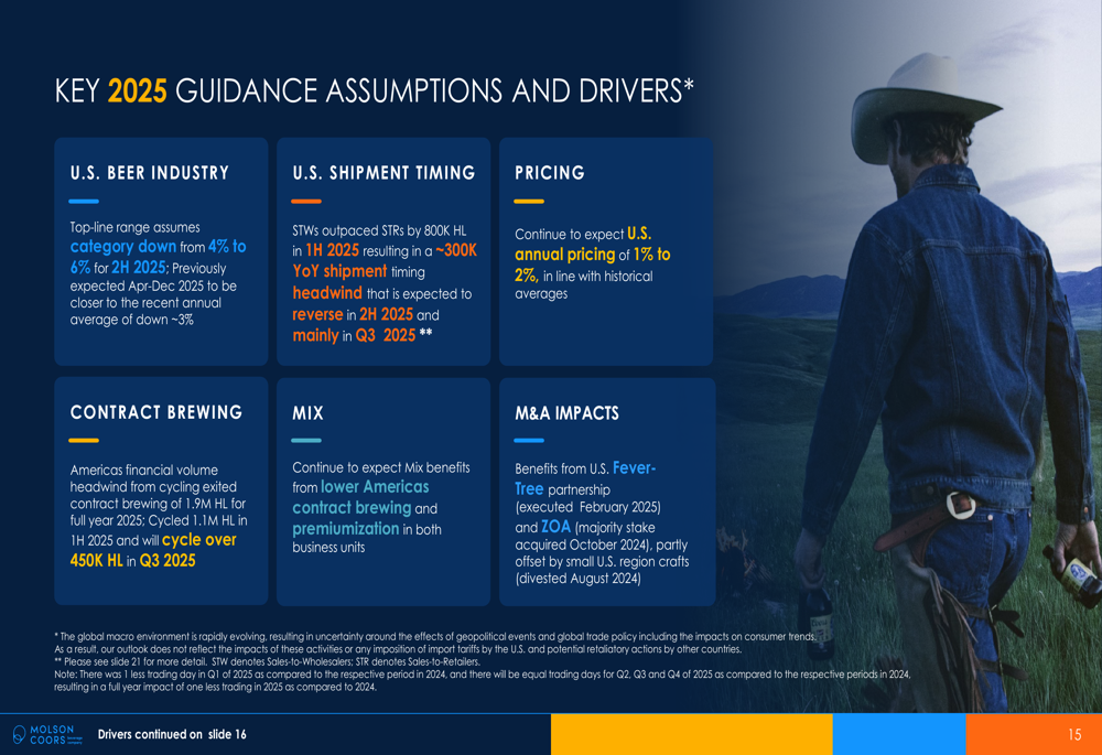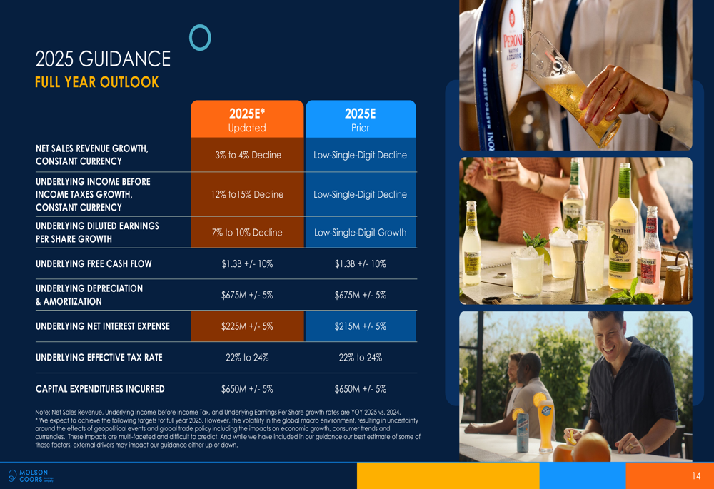 Em vista das condições desafiadoras de mercado, a Molson Coors revisou para baixo suas projeções para o ano completo de 2025: