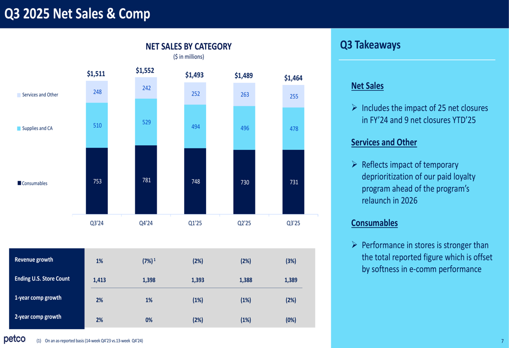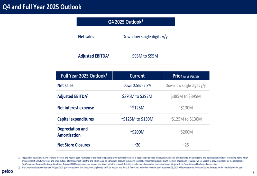 A Petco prevê um retorno ao crescimento das vendas em 2026, apoiado por suas iniciativas estratégicas e pelo relançamento planejado de seu programa de fidelidade pago. A empresa também espera menos fechamentos líquidos de lojas no próximo ano, sinalizando uma mudança em direção à expansão após a atual fase de consolidação.